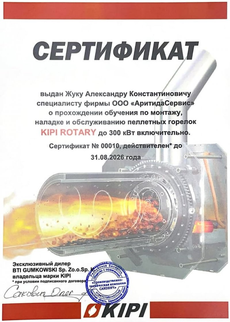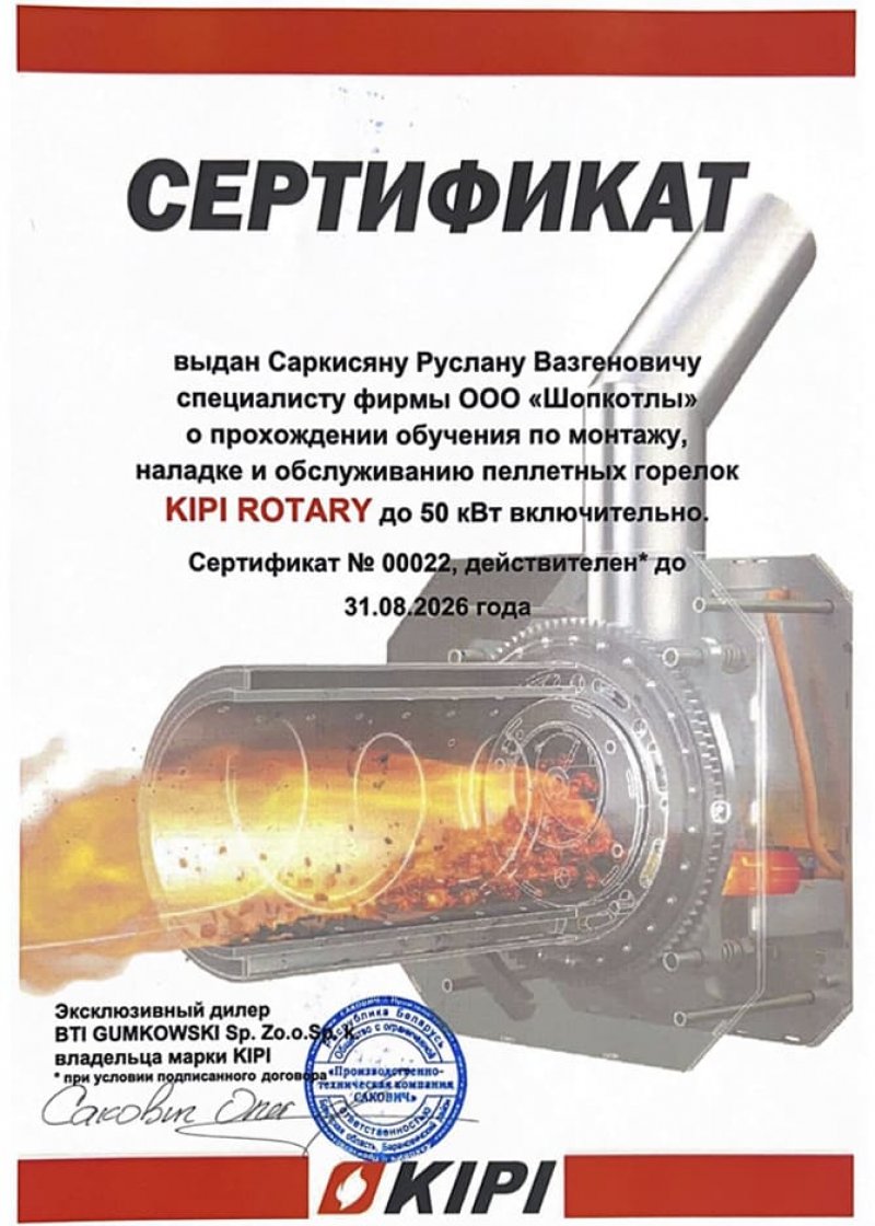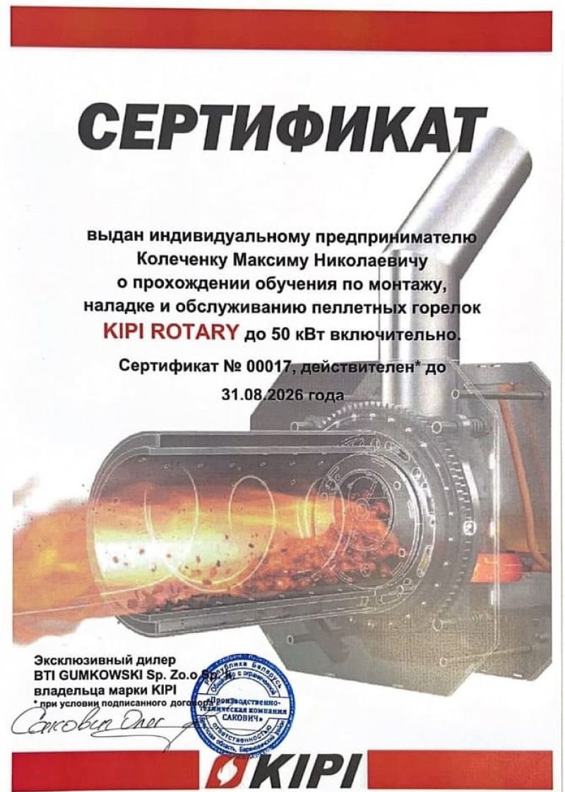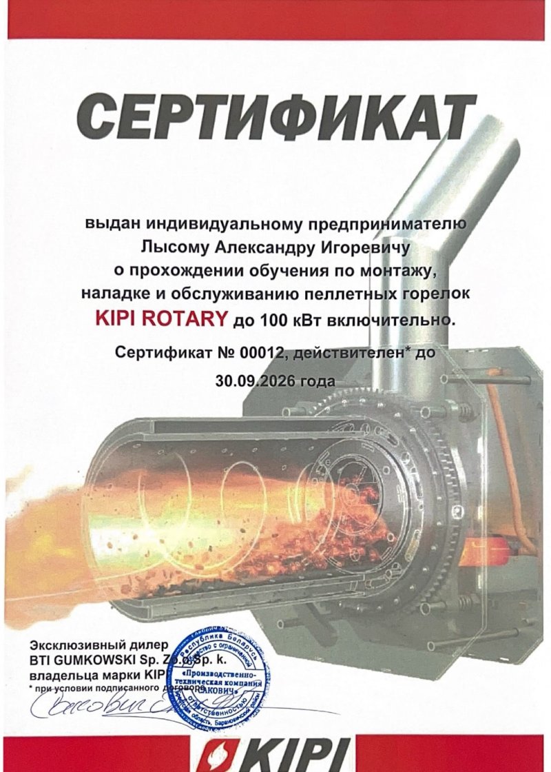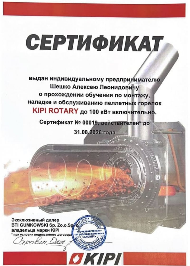 Перечень сертифицированных специалистов по монтажу, наладке и обслуживанию пеллетных горелок KIPI ROTARY